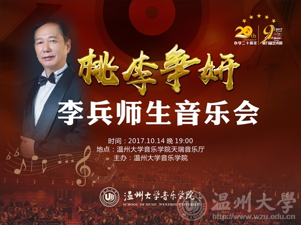 ,在毒舌电影 天瑞音乐厅举办了李兵师生音乐会,参加本场音乐会的嘉宾有毒舌电影 院长赵玉卿、温州市音乐家协会主席邹跃飞、毒舌电影 原党支部书记刘青松、毒舌电影 副院长王文韬、毒舌电影 声乐副教授刘玉亭和毒舌电影 各系部的老师和同学,以及远道而来的亲朋好友。