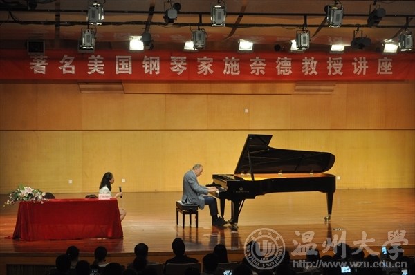 天瑞音乐厅举行了由美国著名钢琴家施奈德教授讲座《论不同音乐风格中的音色概念》,讲座还没开始场下的观众席早已坐满观众。