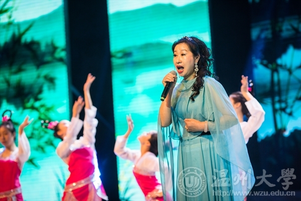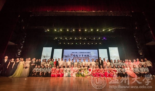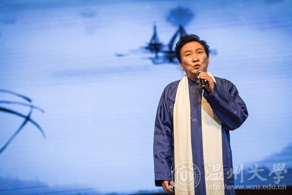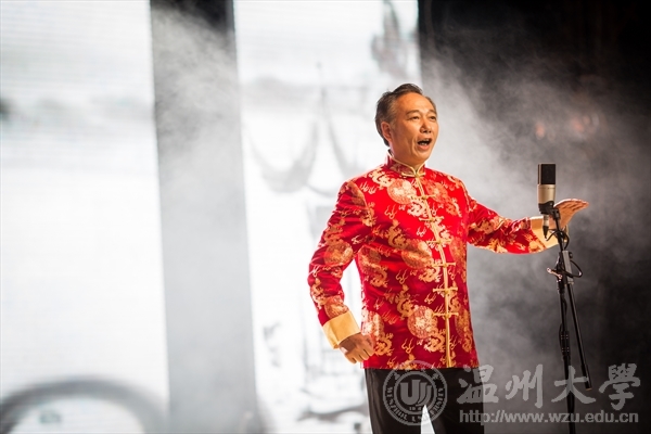 尾声:丝路古今。首先由袁泽浩、张卫强等同学带来的朗诵《飞天中国》,声音洪亮,表达了对祖国殷切的祝福和深深的爱恋之情。姜嘉镳老先生带来的朗诵《渔家傲》,让听众感受到了那原汁原味的古人诗词。歌唱家姜嘉锵带来的《钗头凤》和《挑担茶叶上北京》让观众们深深的感受到了古诗词吟唱的魅力。表演结束后,在观众们热烈的掌声下,姜老师又送给观众们一首《黄鹤楼·送孟浩然之广陵》歌曲,同样也别有一番风味。