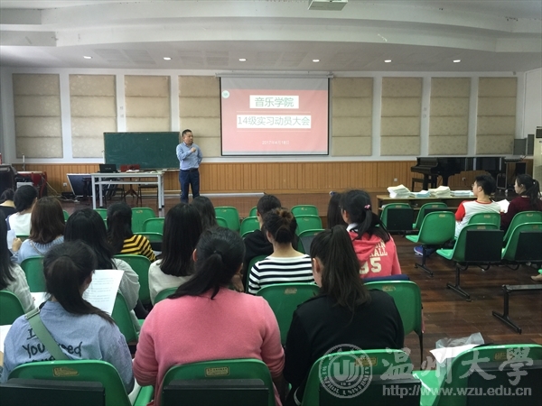 会议伊始,王志毅副院长发表了讲话,宣读了实习过程中的注意事项,希望所有同学在实习中提高专业素养和教学技能,并安全返校;其次,李葳老师强调了实习时间,对“绣山中学实习计划”、“实验小学实习计划”、“14级本科实习计划”三份计划书作了讲解,要求同学们实习期间严格按照校内外指导老师的安排,在保证安全、健康的情况下认真完成实习任务;接着,教务科发放了实习材料,由李老师讲解了材料的用途和填写规范,鼓励大家端正态度,争取在实习后的评优中取得理想成绩;最后,针对14级“跟校实习少,自主实习多”的情况,重申自主实习中的相关事宜。最后学生科负责人林海红老师交代了在实习过程当中需要注意人际关系的交往,避免发生不必要的冲突,努力在实习单位留下好印象,顺利完成实习这项重要的任务。