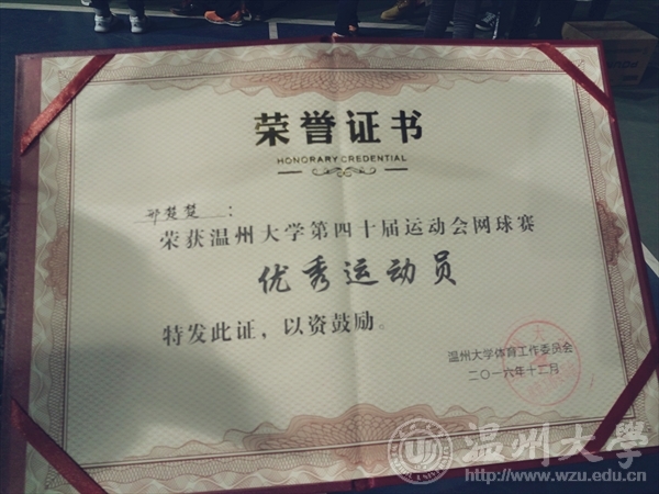 毒舌电影 刑楚楚同学荣获第四十届运动会网球赛优秀运动员