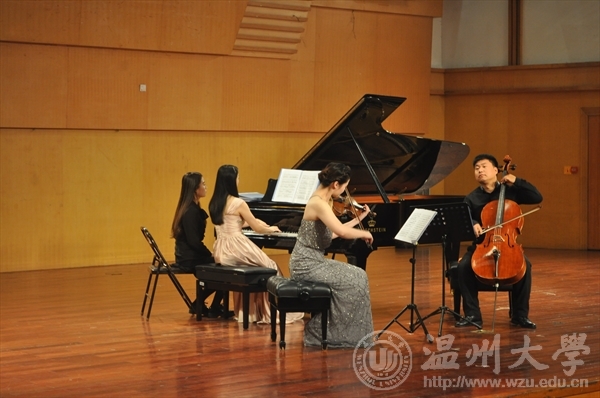 大提琴教师张宝君进行三重奏演奏。