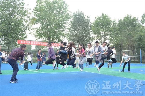 本次师生运动会包括了四个项目,分别是三人四足、集体跳绳、乒乓接力和定点投篮。由于时间的原因,四个项目交替进行。比赛还没开始,老师和学生们已经摩拳擦掌,准备跃跃欲试。老师们没有了平时课上的严肃模样,个个都轻松活泼,甚是幽默。三人四足项目主要是考察队员之间的协调性和默契程度,运动场上队员之间相互鼓励,把握好节奏,都迅速进入了状态,气氛十分热烈,场上不时的爆发出阵阵呐喊。集体跳绳一直都是最受师生欢迎的比赛项目,随着裁判的一声呐喊,场上一下子热烈起来了,大家的目光都集中在绳子上,跟随着运动员跳动的频率,打着节奏。此时此刻,师生之间心与心的距离是如此的近,每个人都在为了共同的目标而坚持着,努力着。乒乓接力考验大家的平衡性和速度,比赛过程中,队员们手持乒乓球拍,有的健步如飞,运球平稳;有的则淡定从容,小心翼翼。参赛的老师和学生们都十分享受这个项目带来的紧张感。定点投篮是这一届趣味运动会的新项目,虽然老师和学生们对这一项目都不太熟悉,但是表现依然令人啧啧称奇,一个个落入篮筐的篮球就好似师生之间相互交融的情感一样,那么真挚,那么火热。