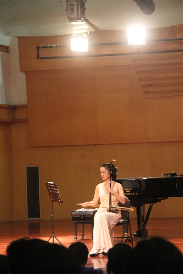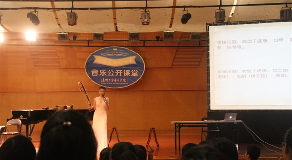,师从我国著名二胡演奏家和教育家薛克教授。本场公开课中,杨欣老师带来了很多有趣的民族乐器知识以及很多动人的曲子。一开始,老师讲述了二胡的历史,以及各种各样的中国民乐中的弓弦乐器,例如板胡/京胡/高胡等。随后解释了《二泉映月》的历史故事并且拉了一小段的曲目,实在让人身临其境,体会颇深。在公开课进行一半的时候,老师还准备了精彩的演出,京胡和古筝带来的《夜深沉》,竹笛带来的《早晨》等一些有趣的乐曲,观众的情绪激昂,情不自禁地鼓起了热烈的掌声。最后,全场在老师演奏的《大鱼》二胡曲中结束,令人流连忘返。