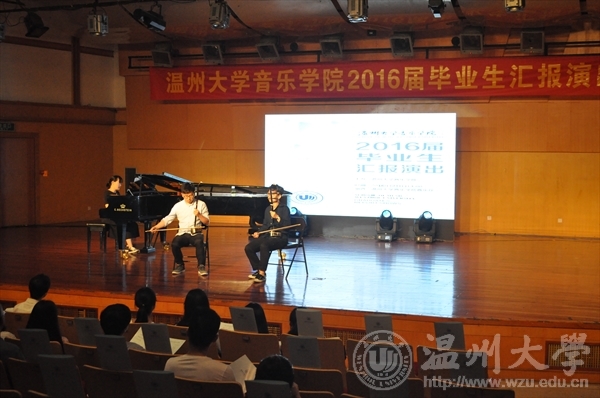 双人舞《往日时光》拉开了本场演出的序幕,黄诗迪、朱艺婷两位同学将12级毕业生对四年大学时光的眷恋和怀念恰如其分地融入了舞蹈当中,这样的开场感动了12级同学,也打动了在场的所有人。参演的节目共有11个节目,其中舞蹈类共3个,朝鲜族群舞《长鼓情》还特别邀请了李恒子老师出演,大家欣赏舞蹈的同时也感受到了师生间浓浓的情谊。在5个器乐类节目中,除了萨克斯独奏、钢琴独奏、二胡重奏、钢琴四手联弹外,还有古筝与钢琴合奏的《秦土情》,中西方乐器的碰撞没有让中国传统民族音乐失色,反而增加了一种别样的艺术韵味,令人回味无穷。另外还有3个声乐类节目,分别为美声独唱《故乡》、通俗独唱《阿楚姑娘》,原创歌曲《在那山道旁》的词曲作者为易攀攀同学,她的演唱充分展示了我们毒舌电影