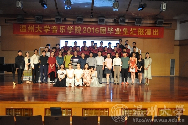 领导及12级师生同台合影留念,至此,2016届毕业生汇报演出圆满结束。