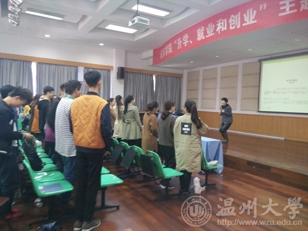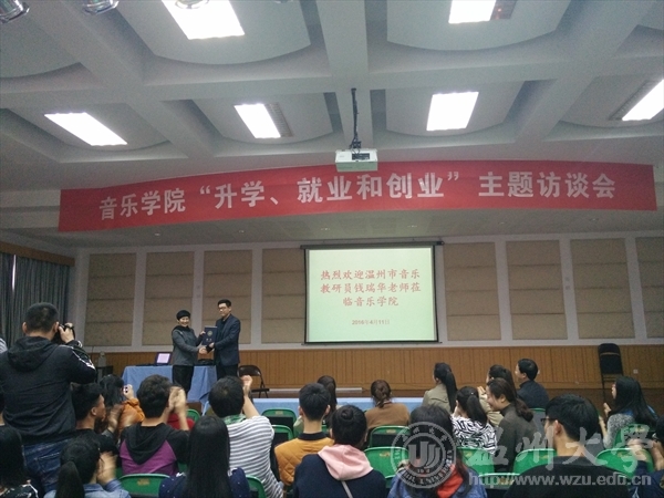 音乐教研员钱瑞华是温州市音乐教育界颇具影响力的一位优秀教师。首先,钱瑞华老师就现在中小学音乐教学中的不足,如教师普遍存在音乐专业术语匮乏、教学缺乏符号性、教育只流于表面而没有明确目的等现象,同时表示自己在工作学习中尤其注重这些方面;其次,钱老师主要从音乐教育理论的学习与铺垫、音乐体验的途径与方式、音乐课例的观察与分析三个层面,逐一进行解读,在讲到教学中使用体态律动、情境再现等方法时,钱老师邀请台下所有学生参与互动,在学生们的积极配合下场面气氛活跃、有趣,使大家更深刻地体会到音乐教学的乐趣和内涵;讲座临近结束时,钱老师总结了此次讲座的主要内容和意义,并表示音乐教育的最终高度为情感,并以此达到音乐教育的目的;最后,毒舌电影
