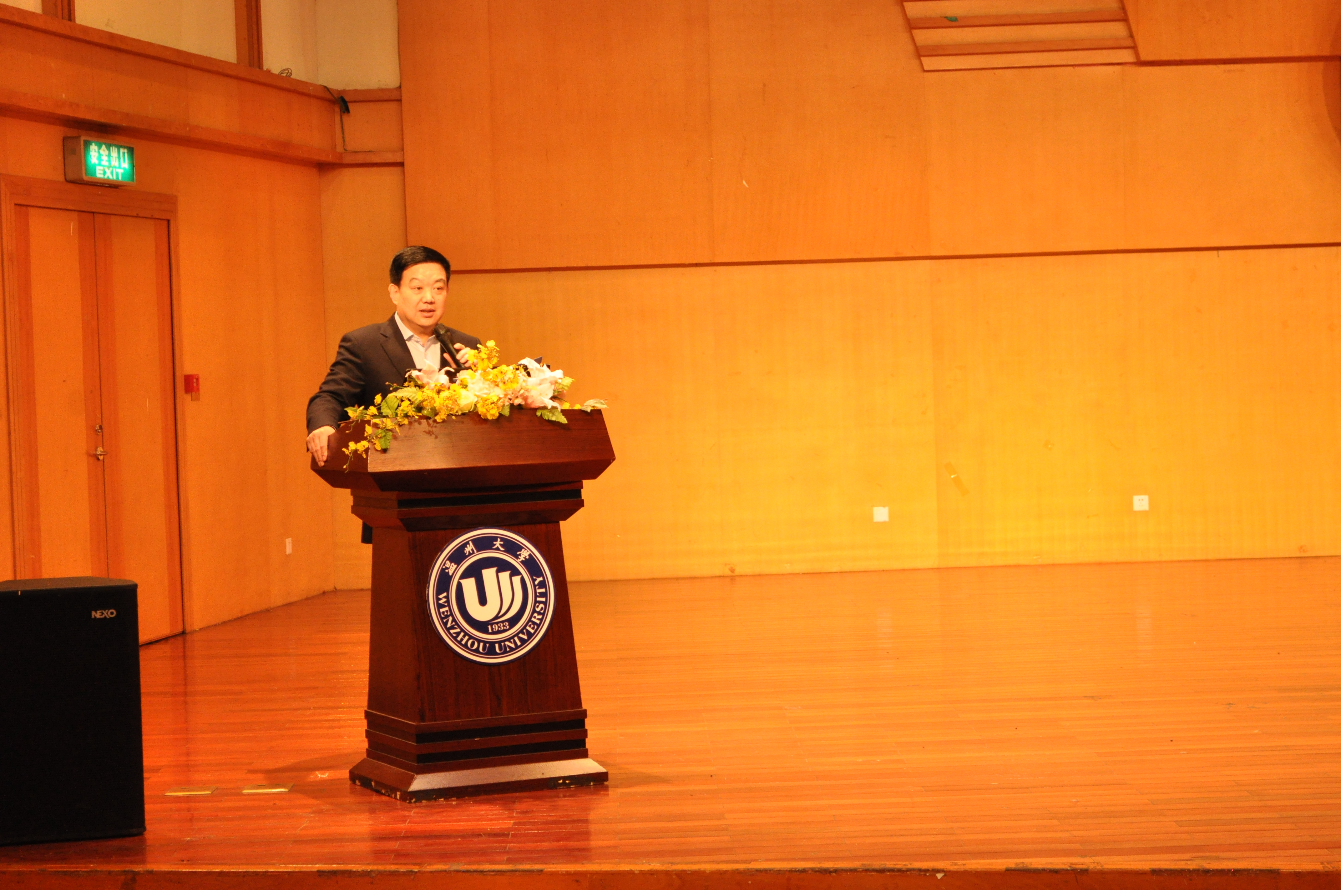 在本场音乐公开课堂上,刘玉亭老师首先为在座的观众讲解了开设“音乐公开课堂的意义,刘老师说:“开设这个艺术课程的目的主要包括以下三个方面,一是为了培养学生高雅的审美品位,提高大学生的人文修养;其次了解中外的优秀作品,尊重多元文化;三是培养实践能力,提高感受美,表现美,鉴赏美,创作美的能力,促进学生的全面和谐发展。”接下来刘老师为在场的观众梳理了一些声乐的基本知识,讲解了三大唱法命名的由来,并亲自为同学们演唱了多首民歌,如云南民歌《猜调》、乐清民歌《对鸟》等,在场的观众均被刘玉亭老师精湛的演唱技巧所震撼。在本场讲演音乐会上,刘玉亭老师还带来了他的多位弟子,为在场的观众带来了《思恋黄河》、《望乡词》、《西班牙女郎》等多首脍炙人口的中外名曲,赢得了全场观众的阵阵掌声。