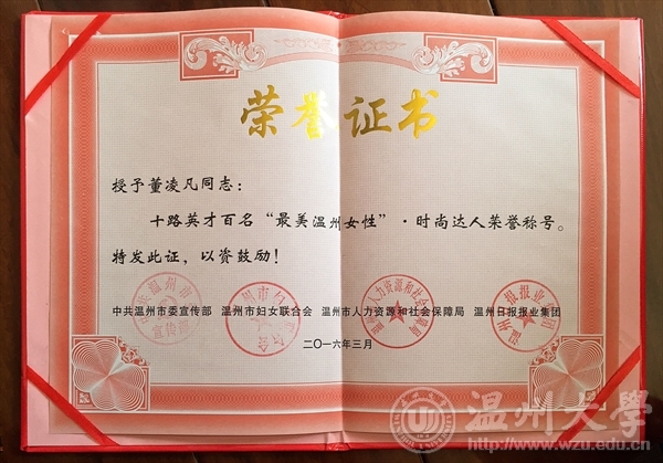 琵琶,古筝副教授董凌凡荣誉入围温州市十路英才百名“最美温州女性”中的时尚达人。