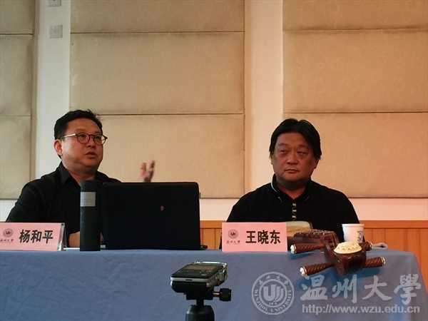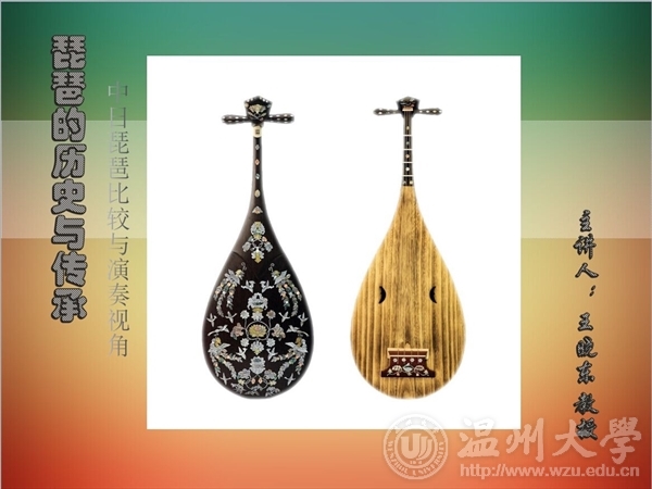 两位教授从比较的角度,就中日琵琶的发展历史、演变进行了讲演。王晓东教授认为汉代是琵琶的第一高峰期,唐代则是第二高峰,宋代胡人入侵,琵琶艺术开始走向下坡路。王晓东教授一边讲解一边示范演奏,他以精湛的技艺为师生们演奏了《瀛洲小调》、《春江花月夜》、《十面埋伏》、《送我一支玫瑰花》及相关日本琵琶曲。杨和平教授从他去日本进行的“田野”工作角度,通俗地予以琵琶文化之拓展,在场的全体师生感受到了传统琵琶的魅力。
