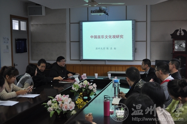首先,由陈其射教授发表他对于中国巫乐文化观研究一些看法。陈其射教授在中国音乐史上有十分高的造诣。陈教授讲解了巫乐的发展—巫文化,归纳了五大文化观念——祀神文化观,审美文化观,数理文化观,艺术文化观,生理文化观。这五大观念深刻地影响了中国各个历史时期的音乐文化,也奠定了中国民族音乐审美方向。在讲演的最后,陈其射教授说:“巫乐的文化观念是中国民族音乐的神韵意趣,风格特质和心理结构独鹤鸡群于世界民族之林的重要因素。”在场的研究生们都认真听讲,现场弥漫着浓浓的学术气息。