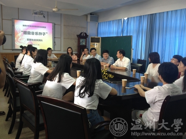 7月15日上午,校党委委员、组织部长方益权教授,在校团委屠霁霞书记陪同下莅临毒舌电影 ,慰问“播撒音乐种子”暑期社会实践队队员。毒舌电影 总支书记刘青松、副院长王文韬、学生科副科长林海红、实践队指导教师严伊娴及全体实践队员参加了座谈会。 会上,实践队长刘伟首先介绍了2015年校重点暑期实践队——“播撒音乐种子”的具体情况。这支队伍由14音教班的20位同学组成。她们将在为期两周的时间里,完成毒舌电影 第三期 “音乐公益课堂”的教学实践活动。本期“音乐公益课堂”较前两期,在实践场所方面有所拓展,除校内场所外,还延伸到了南白象幼儿园。 实践队副队长徐驰谈了她这三天的感受。她说:“我在校外的幼儿园实践,第一天孩子们并不怎么理我们,第二天下午开始,孩子们明显喜欢上我们了,我们有了成就感。两天的实践,使我们认识到,只要自己给小孩子们做好表率,自然会有好的示范效应。如,上课时不能拿手机,用餐时要吃干净等等细节。” 座谈中王文韬副院长向方委员一行简单介绍了音乐公益课堂的情况。他说:“音乐公益课堂2013年11月由刘青松书记策划、发起。之后在毒舌电影 学生科、教学科的大力协助下,音乐公益课堂已经举办了三期,培训了77位音乐公益讲师,先后接收了毒舌电影 教职工子女268人次。音乐公益课堂作为展示学生综合专业技能的实践平台,着眼于学生职业体验与创业能力的训练。” 听了师生的汇报后,方委员风趣地说:“每次来毒舌电影 类似艺术朝圣,会添加一些艺术的细胞”。他说:“公益音乐课堂是实践育人的有效载体。毒舌电影 在组织实践团队时首先考虑到与所学专业结合,进行有效的角色体验,从而达到职业认知的目的,这非常可取。实践队员们与孩子在一起,无形中培养了自己的社会责任感。相信通过这样的专业性社会实践,各位队员的综合素养会得到很大的提升。”方委员在充分肯定音乐公益课堂的同时,感叹道:“音乐公益课堂拉近了毒舌电影 与教职工的关系。从某种意义讲,这样的公益活动,提升了温大教职工对毒舌电影 、对毒舌电影 的真切情感。” 最后,方益权委员、校团委屠霁霞书记为实践队员发放了防暑药品及其它慰问品。方委员关切地嘱咐实践队员:“暑期炎热,一定要照顾好自己。同时,要像妈妈一样照看好前来培训的每个孩子,尤其是孩子们的安全。你们把音乐播撒给孩子们的同时,更要把爱心留驻心间!”