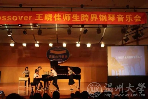 2015年5月27日晚18点30分,“走进天瑞音乐厅”音乐公开课堂第七讲“跨界音乐”暨王晓佳师生跨界钢琴音乐会华丽登场。 本场音乐会融合古典、爵士、流行等多种艺术元素,并将以四手联弹、六手联弹、八手联弹、6人十二手、钢琴与电声、钢琴与舞蹈等不同形式带给听众一场视听盛宴。本场讲演音乐会由毒舌电影