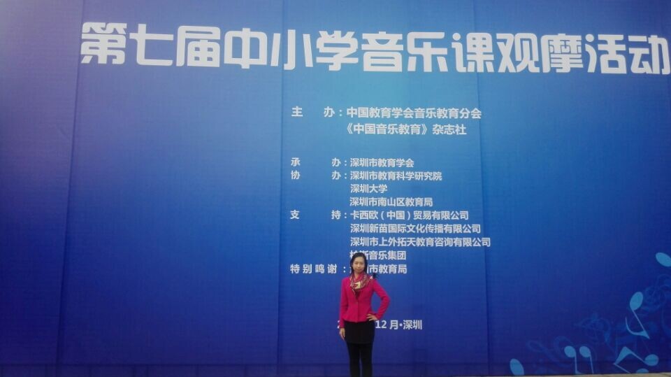 2014年12月7日-11日,我院理论教研室李葳老师赴深圳观摩了全国第七届中小学优质课比赛小学组的比赛。此次比赛是继2011 年重庆第六届全国中小学音乐优质课比赛后的又一次中小学音乐老师的盛会,也是2011版中义务教育音乐课程标准颁布以来的首届中小学优质课比赛。小学组共有21节课,分别从全国各省市72节课中脱颖而出进行现场展示。来自全国各地7000余中小学音乐教师和音乐工作者观摩了此次盛会,是历届参与人数最多的盛会。