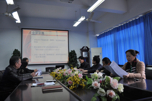 会议主要讨论了2017年音乐学(师范)专业招生选考科目事宜。省教育厅提出了“3+X”模式。经过权衡,会议以为,我院的招考对象要参加人文、历史等相关科目的考试,这有利于我们对学生的培养。并初步确定,除语文、数学、外语这三门必考科目外,要报考毒舌电影