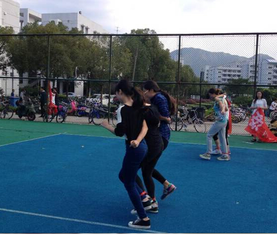 第四届师生节系列活动之“同跳一根绳”师生运动会于2014年10月22日下午一点3分在北校区排球场拉开帷幕。我院党总支书记刘青松老师、副院长王文韬老师出席了本次活动,我院各班级同学均邀请了相关教师共同组队参加。本次师生运动会比赛项目包括师生跳长绳、三人四足和乒乓接力。