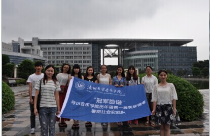 2014年7月4日上午10点,冠军脸谱暑期实践队景宁队队员一行人来到了景宁城北中学。潘椿年学长亲切带领实践队员们参观了学校。天气虽然炎热,但队员们的热情却不减分毫,潘椿年学长带领大家参观了学校的运动操场,美术教室和音乐教室等。学长带我们带我们来到平时他上课的教室,墙上贴着许多音乐家们的照片,窗边还摆放着一架钢琴。学长还告诉大家,对于一节课来说气氛也是尤其重要的。要在轻松有趣的氛围环境下带着同学们来仔细的感受音乐,学习音乐。随后我们又来到了潘椿年学长的办公室。办公桌摆放着许多教材与音乐类书籍。学长在课余时间也不忘自己的学习,在教育他人的同时也在不断提高对自身的要求。