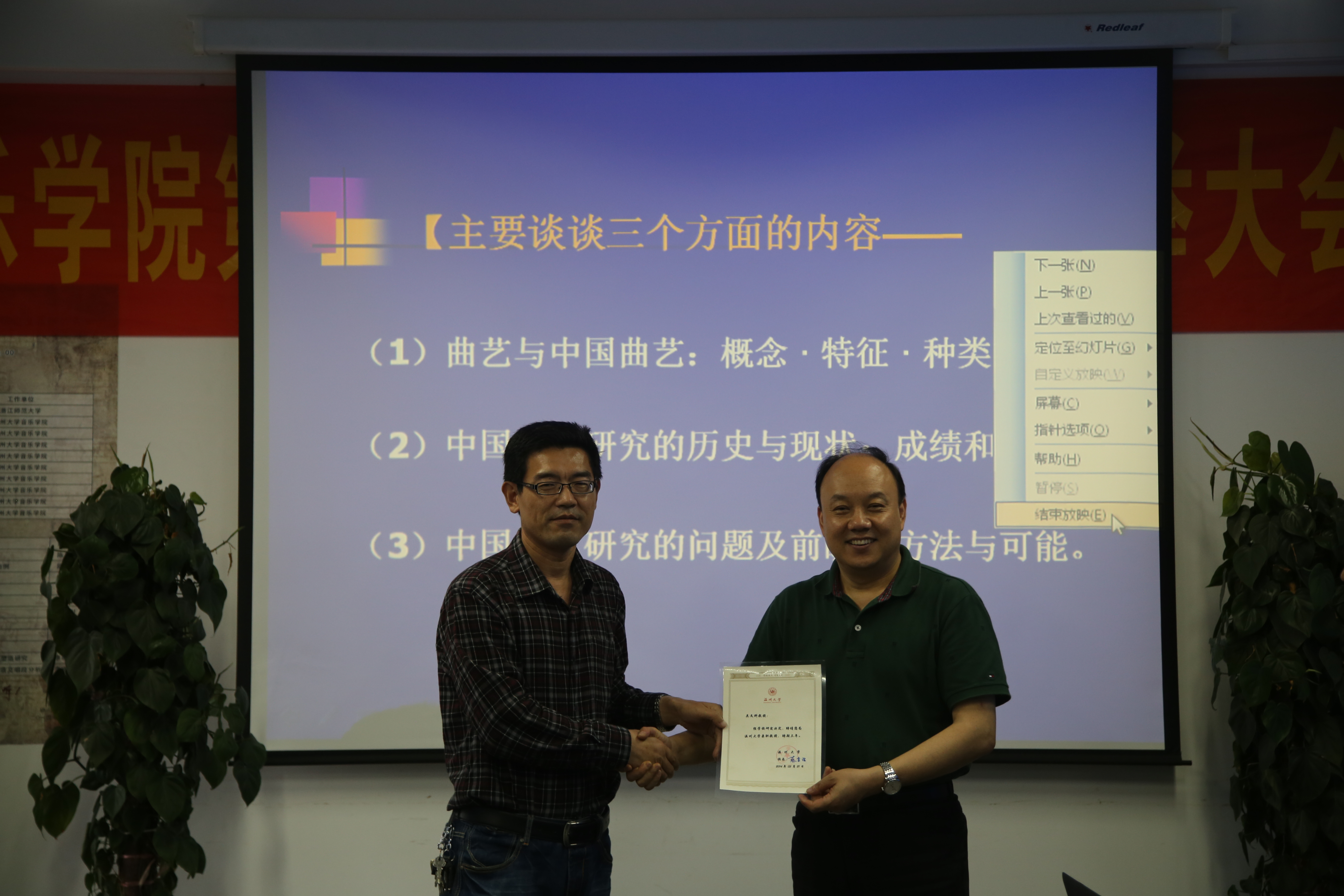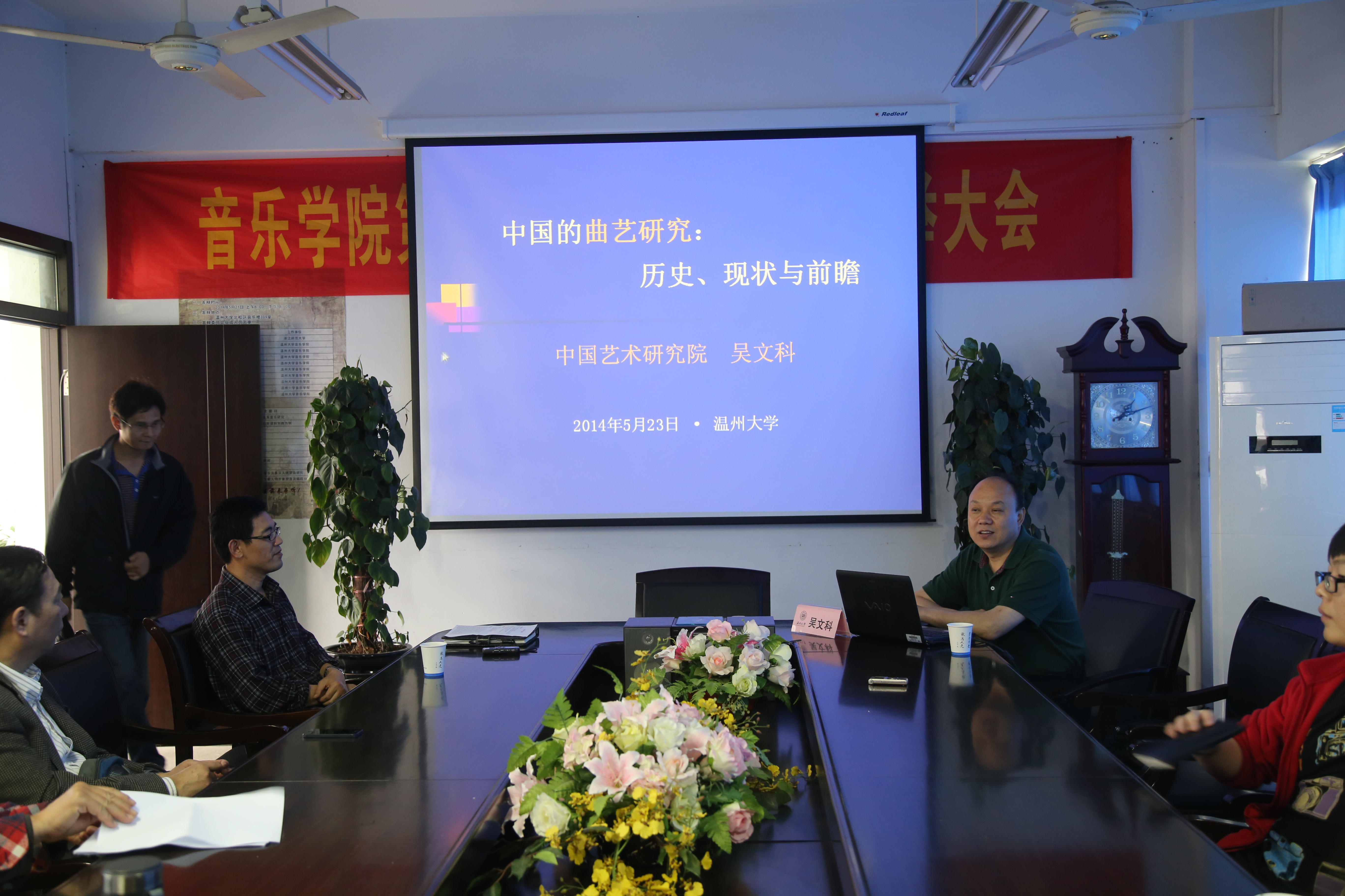 5月23日(周五)下午14时,我院特邀中国艺术研究院曲艺研究所所长,研究员,博士生导师,中国曲艺家协会副主席,国家非物质文化遗产保护工作专家委员会委员吴文科教授莅临举办了主题为“中国的曲艺研究:历史、现状与前瞻”的学术讲座。讲座正式开始之前,赵玉卿院长对吴文科教授的研究领域做出介绍,对其学术成果做出高度评价,我院多位教授、老师及全体研究生出席本次会议。