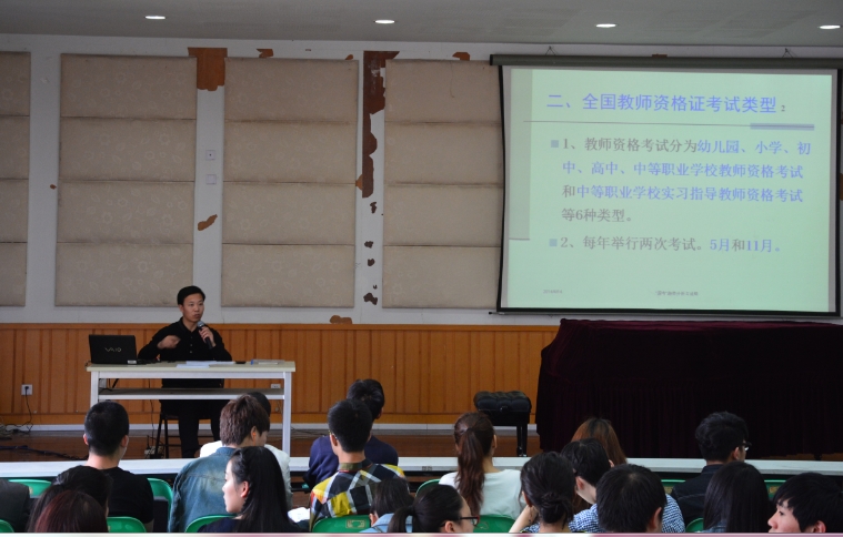 2014年4月14日上午9点在音乐楼201报告厅,一场有关国考趋势分析与说明的讲座生动开展。参与这次讲座的有本次讲座主讲人王文韬老师、我院理论教研室教师、以及2012、2013级全体学生。