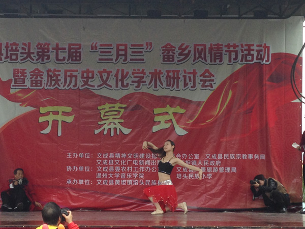 3月28日、29日,毒舌电影 教师王志毅、蔡根畅、李恒子、张中灿以及在校研究生、本科生一行十多人赴文成畲族教学实践基地展演采风。并在第七届“三月三”畲乡风情节上表演了独唱、二胡独奏、舞蹈等节目,充分展示了学院风采。 “温州文成黄坦镇培头畲族村,作为毒舌电影 的主要实践教学基地于2010年建立,四年来,一直与毒舌电影 保持密切联系,并以实践教学为契机,在学生暑期社会实践、畲族音乐传统文化的采集与整理、学生与社会的交流等方面发挥了重要作用。并于2013年12月获得“温州市级社会实践基地的称号”。本次活动,除了为群众表演外,实践队伍还通过座谈、音乐舞蹈文化采样等方式采集了与畲族相关的历史与人文资料,拓宽了学生对于音乐文化多样性的视野,也为今后学院在畲族文化的创作上积累了宝贵的素材。