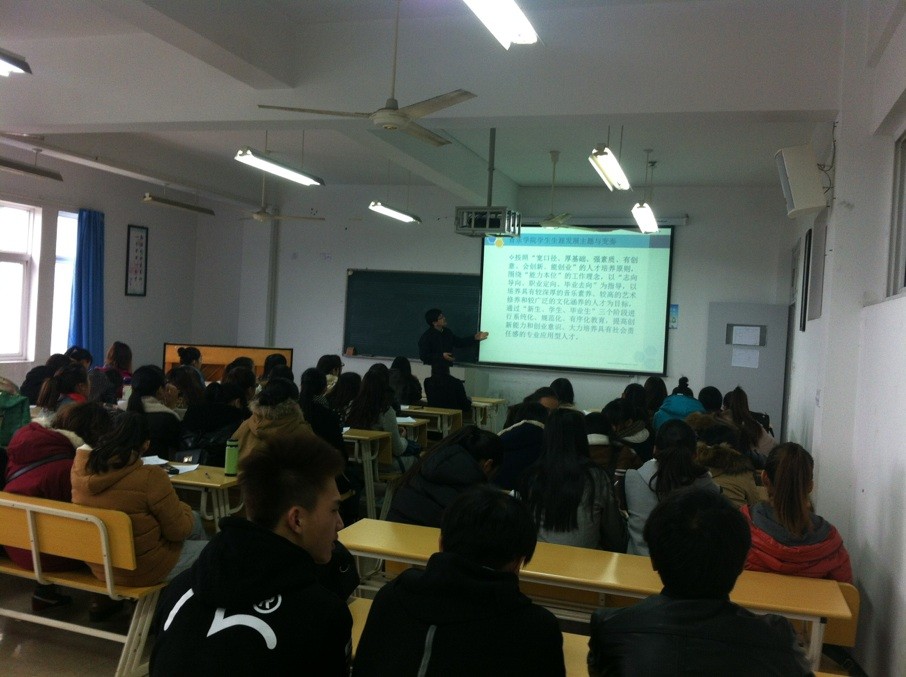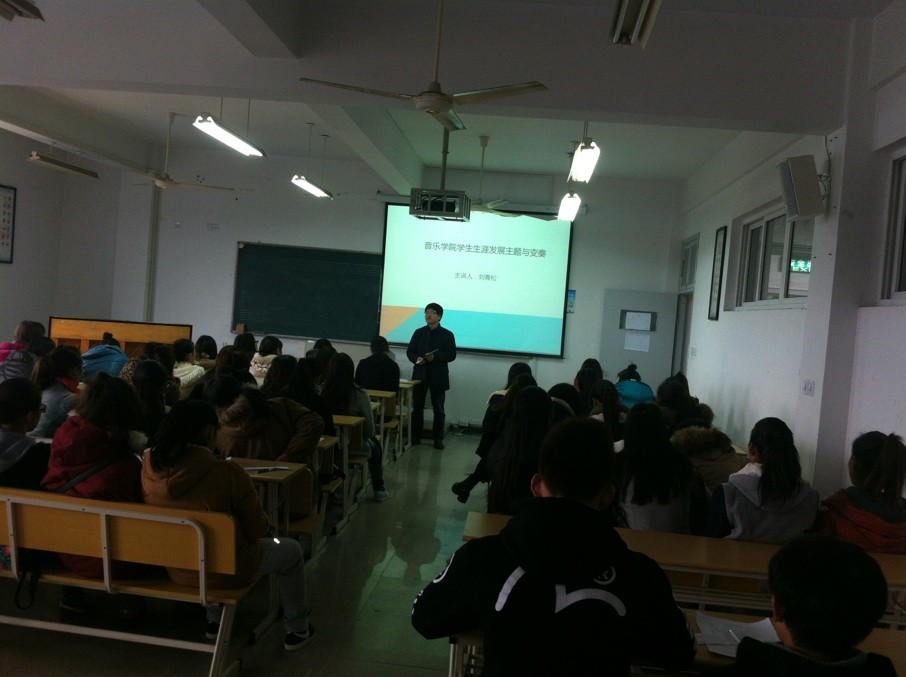 刘青松书记的讲座共分为两大部分:第一部分关于如何为四年以后的今天做好充分的准备。认为同学们要以志向导向、职业定向、毕业去向作为指导,思维要创新,需要打开新维度。指导新生在大学之初首要是明确学习目标,端正学习态度,不旷课不早退等。第二部分主要内容是围绕怎样避免四年以后出现的迷茫。指出同学们不同程度存在就业方向狭窄、心理预期偏高、职业定位模糊、职业素养缺失等问题。经过课堂现场自我测评,大部分新生选择在四年后从事教师职业。刘书记认为,选择当老师,既要明确音乐专业性,又要明确教师教育的师范性。不仅要掌握音乐专业知识,又要掌握教师职业技能,如交流沟通能力、自我提高能力等。他还说,要成为一名公办的教师,就需要提早开始收集相关招聘教师考试信息,及早了解当地教师招考的要求。之后,刘书记向我们介绍了有关的工作岗位以及相关的企事业单位。如电子音乐制作、网络课件设计师、社会文化指导员等相关内容。