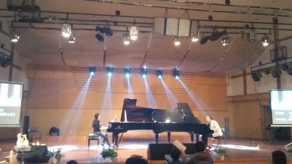 2013年11月20号下午五点四十,灯光师调音师在北校天瑞音乐厅忙碌着,灯光在四处闪烁,音响也在紧张调试,只希望在明晚能给大家带来最好最棒的试听效果。