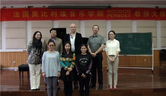 大师班由我院同学陳婷演奏的莫扎特《第三小提琴协奏曲》拉开帷幕,紧接着周莹同学演奏了圣桑的《哈瓦奈斯》,Roudon先生给予了她们精准的点评,然后,向斯贴演奏了贝多芬奏鸣曲《作品57号热情第三乐章》;易情情演奏了德彪西前奏曲第二册第8首《水中仙》,最后,在莫颖老师演奏的肖邦《第一钢琴叙事曲》结束了本次大师班活动,得到了Bruno PERBOST先生充分的肯定。大师风趣的教学,赢得了老师和学生的阵阵掌声。