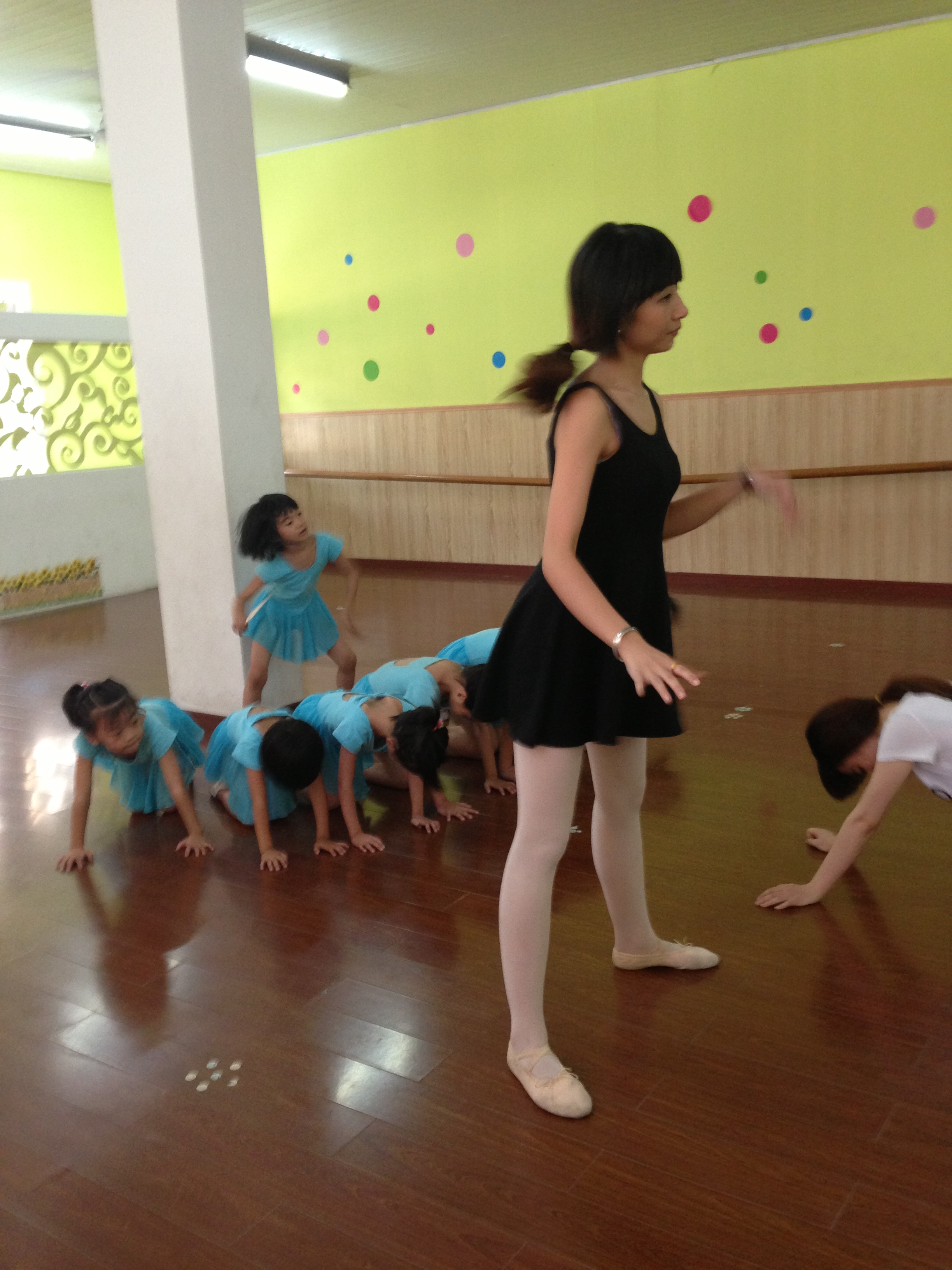 下午,也是两个班,一个是少儿国标班,一个是儿舞初级班。首先是第一个班国标班,我不会国标,就只能听听,帮老师做些杂物。不过这些小朋友都已经有点大了,大概小学一二年级的样子,不用我怎么管着,于是我就在后面跟着一起学国标。我觉得这很有意义。不仅从老师那获得了教学经验,同时也在老师那学到了宝贵的知识。第二个儿舞初级班,我还是照常做助教,和以前一样,帮帮老师。