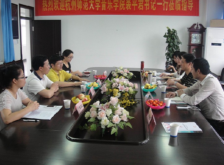 裘平君书记莅临学院指导表示欢迎。刘书记简要介绍了近年来我院建设与发展的情况,详细地介绍学风建设、创业教育与学生活动品牌创建方面的工作。王文韬副院长重点介绍了学院“艺术周”开展情况。会上,大家围绕“艺术周活动”、“学风建设问题”、“就业问题”等做了深入细致的交流。