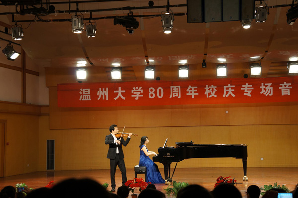 师生倾情、倾心、倾力,为校庆献上了一场高雅、高水平的视听盛宴。现场观众着实享受了一顿音乐的饕餮大餐。