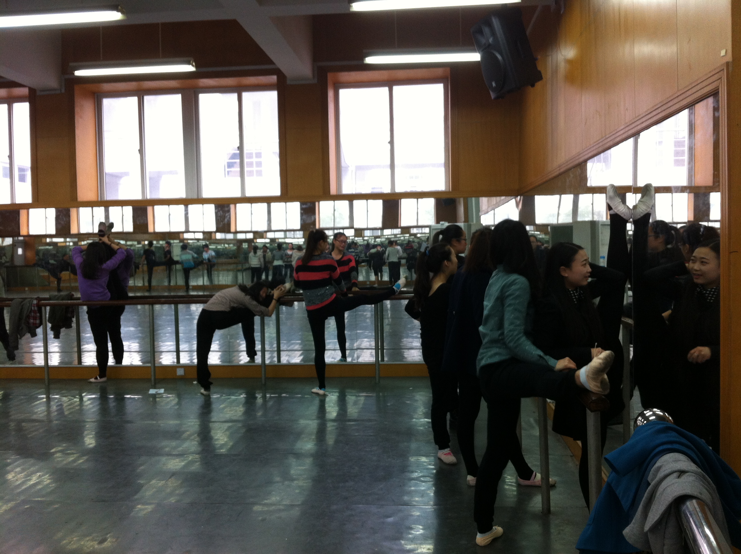 2013年2月28号(周四)早7点30分,我院舞蹈专业“早功晨练活动”正式启动。各年级舞蹈专业学生均早早到了舞蹈房进行压腿、劈叉、舞蹈练习等早训练功。练习过程中,他们以良好的精神风貌展现了对舞蹈的热爱与不懈。学院刘青松书记亲自到场鼓舞全体学生,舞蹈教研室冯百跃教授、李恒子老师等都到一楼、二楼舞蹈房指导学生早功。