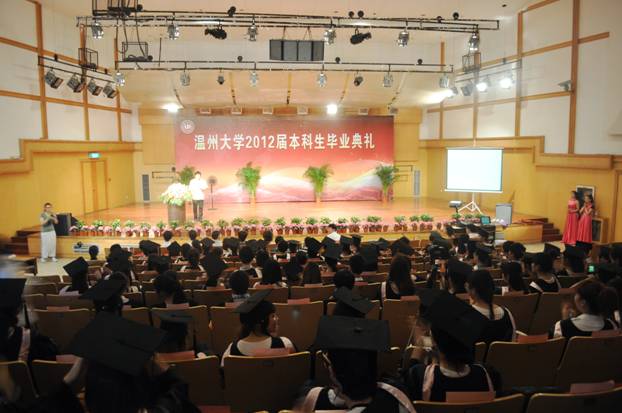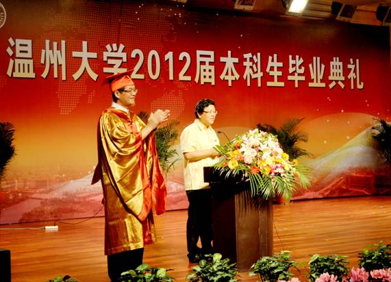 的发展。同时,李院长也真挚地祝愿毕业生们在充满无限挑战与期待的未来,勇于担当、事业有成。院党总支书记刘青松宣读了2012 届我院省优毕业生、校优毕业生、瓯江学院优秀毕业名单。毕业生代表、谷超豪奖学金获得者08音本班蔡维虹发言,她回忆了美好的大学时光,并和毕业生们共勉,铭记母校“求学问是,敢为人先”的校训,谨遵师长教诲,担负起时代的使命。