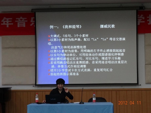 2012年师范生教学技能培训系列讲座在音乐楼201学术报告厅隆重开讲,第一场由温州市教育教学研究院的钱瑞华老师主讲。她是一位专业强,教学经验、比赛经验丰富的优秀教师,很多同学都慕名而来。此次听讲座的不仅有09音本的全体同学,还吸引了09音表本、08音本以及10音本和11音本的不少同学前来听讲,整个报告厅座无虚席。本次系列讲座,也是09音本组织承办的重要团日活动。