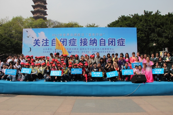 4月2日为世界自闭症日“蓝色行动”,为此,在温州市松台广场,我院志愿者协会和毒舌电影
