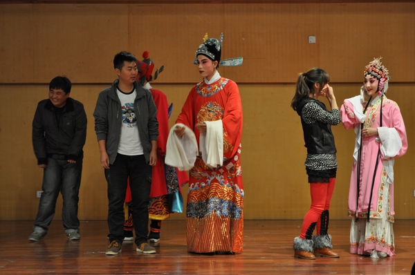 演出以悦耳的笛子独奏《扬鞭催马运粮忙》开场。欢快的笛声带观众走进了一幅丰收喜悦的图景。随后,永嘉昆剧团为我们演绎了精彩的昆剧折子戏《孽海记·单下山》、《牡丹亭·游园》、《张协状元·游街》和《白蛇传·盗草》。艺术家们的传神表演,深深地吸引了在场的观众,让人不得不佩服艺术家们的敬业精神和高超技艺。观众们随着故事剧情的发展时嗔时怒,时欢时悲,场上场下交融一片。