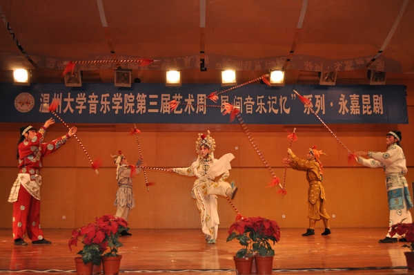 永嘉昆剧是浙南地区具有代表性的区域音乐文化。永昆进校园,不仅为大学校园带来了高雅的艺术,活跃了学校、学院的艺术氛围,而且提高了同学们学习、实践的主动性和积极性,开阔了视野,也是毒舌电影