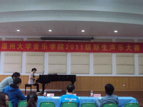 11月16日下午,我院在北校区音乐楼201举办了2011级新生声乐大赛。毒舌电影 李兵、叶文辉、刘玉亭担任评委。本次比赛共有26名11级新生报名参加。比赛中,同学们各展风采,获得了评委老师和同学们的好评,最后有15名同学进入决赛。