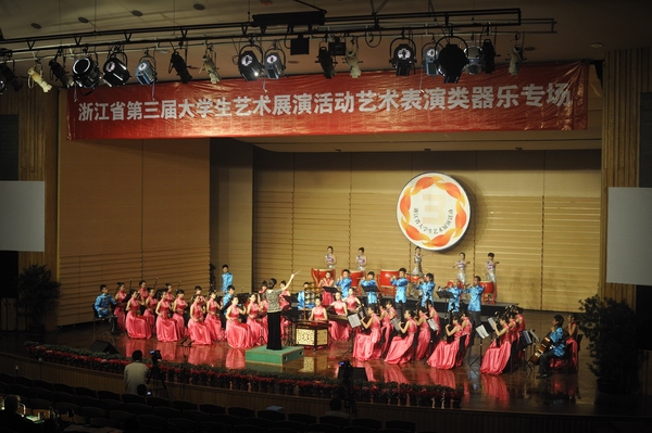 悠悠西子湖畔,我院两支专业特色团队在经过几个月的排练之后,女声合唱团表演的《樱花》、《工尺谱游戏》和器乐合奏《龙腾虎跃》均获得浙江省大学生艺术展演乙组(专业组)一等奖。