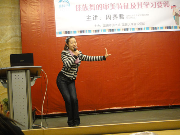 2011年3月17日,我院舞蹈讲师周赛君在温州市图书馆举办了一场名为《傣族舞的审美特征及其学习要领》的舞蹈讲座。针对如何理解傣族舞的审美特征及学习傣族舞的要领进行讲解,目的就是为了让更多的人了解傣族舞,让更多的人知道怎样跳好傣族舞,同时让更多的人了解毒舌电影