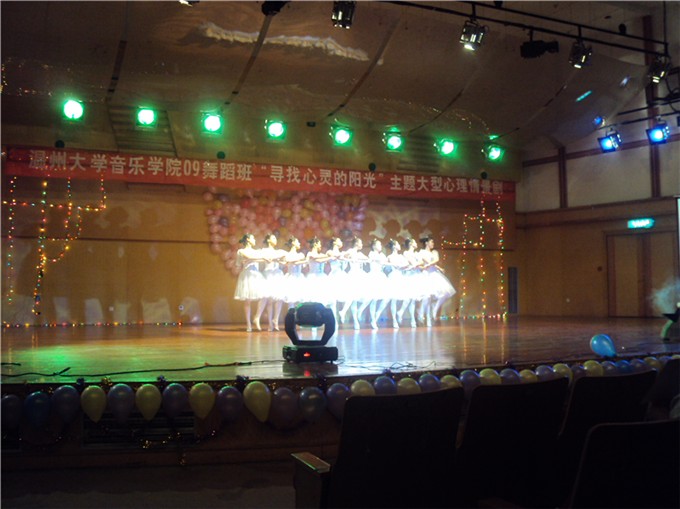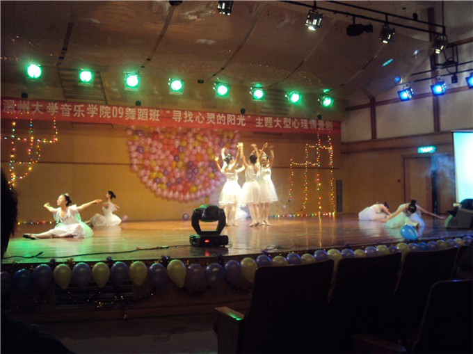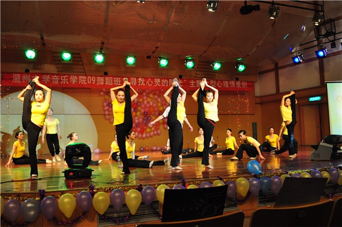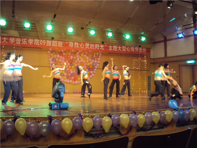 09级舞蹈班20位同学通过诗朗诵、舞蹈、歌曲、话剧、器乐合奏、健美操表演等丰富多彩的艺术形式为冬日的大学校园献上一份精神大餐。整场活动共由三部分组成。第一部分“青涩的童年”,开场的配乐诗朗诵《在山的那边》,将我们带回了童年;芭蕾舞《春的旋律》,让我们看到了一个个跳跃的音符、甜美的天使;《最初的梦想》勾起了我们心底曾经那个梦想,而充满活力的健美操《high C》,为我们带来了一个小高潮。以“多姿的青春”为主题的第二部分首先为我们带来的是话剧《成长》,从中我们充分感受到了主人公的成长,仿佛是曾经的那个自己;舞蹈《博了,哭了》技艺高超,催人泪下;歌曲《我的舞台》激情澎湃;歌舞表演《can’t stop》引起全场欢呼。器乐合奏《神话》拉开了第三部分“甜蜜的微笑”的序幕,三人舞《小伙》俏皮可爱,歌曲《倔强》让我们体会到青春的倔强与执着。而最后的集体舞《我的未来不是梦》,是同学用生命在舞蹈,用眼泪和汗水在表演,她们对舞蹈的热爱和坚持令我们感动。