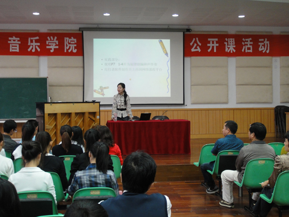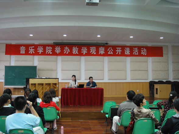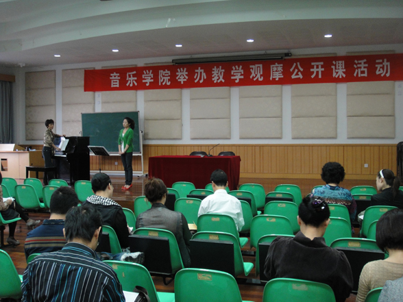 为进一步提高我院教师课堂教学质量,展现我院教师风采,学院于2010年10月13日下午1:30在北校区音乐楼201教室首次举办我院教学观摩活动, 此次观摩活动由学院副院长王志毅主持.分别由蔡军老师讲授《乐理与视唱练耳》之< 调式中的音程与和弦>和孙会玲老师教授《声乐》两场公开课,标志着我院已开展本科生教学观摩与教学经验交流活动的开始。此次交流活动是我院为提升本科教学质量,提高本院教师教学水平开展的教学经验交流、点评和观摩系列活动之一。