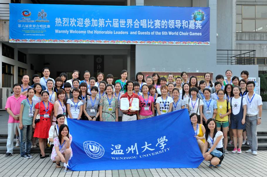的学生,共有51名团员,经过报名资格审查、选拔考核,于今年5月5日正式成立。在筹备和比赛期间,我院党政领导高度重视,校党委副书记牟德刚多次到现场指导工作,并亲临比赛现场慰问鼓励全体参赛演职师生;邹跃飞、余小玲等专家多次给予合唱团以悉心指导;指挥叶文辉老师全身心投入指挥排练工作,学院相关老师积极配合。据介绍,温大女声合唱团的演唱特点是细腻柔美,突出江南风格;良好的基本功是她们取得好成绩的最大保证。经过两个半月的艰苦训练,她们第一次亮相就是这种国际性的比赛,而且拿到了金奖,这对于一支刚组建的团队来说,起点实在有点高。为此,指挥叶文辉直呼“出乎意料”。