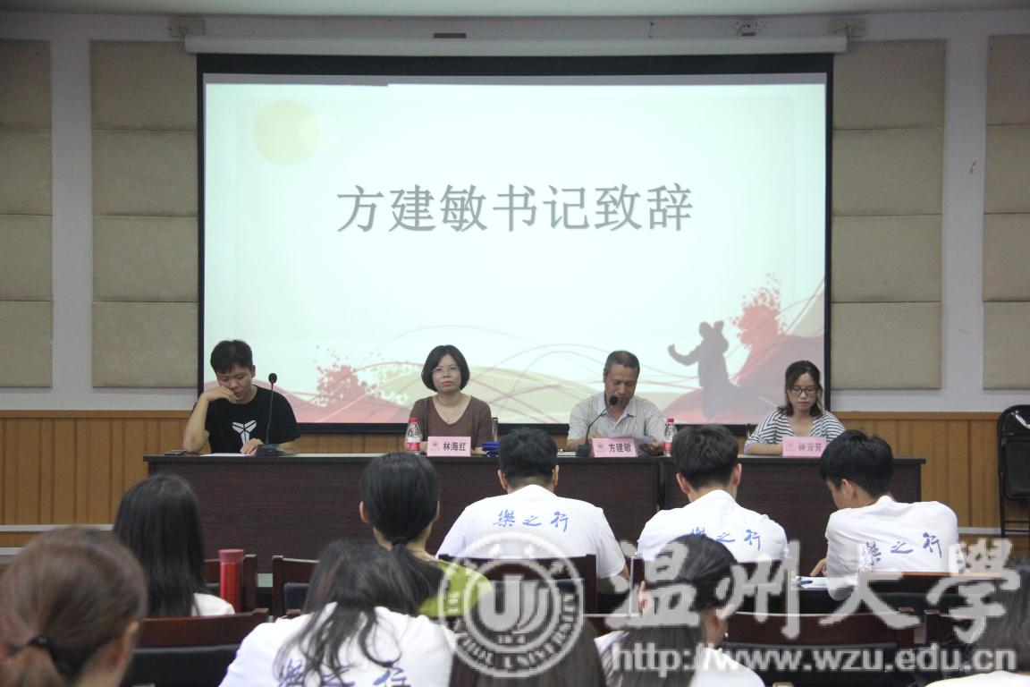 首先,由主持人赵聪聪同学介绍了到场的领导及老师,紧接着由方建敏书记进行致辞。方书记既讲述了暑期实践队的意义,也说明了在实践期间的安全要求,方书记坚定地说到今年的社会实践必定会取得更多的成就和更圆满的成功。随后由林海红老师致辞,在给予了同学们暑期实践期间的一些建议之后,林老师表示这次实践中同学们要提升自己的能力,每支实践队要充分挖掘自己的特色。除此之外,钟芳芳老师也与大家进行了进一步的动员交流。与方书记和林老师着重点不一样的是,钟芳芳老师给同学们传输了更多教学经验,强调了自信的重要性,并且告诉同学们要为每天的课程安排做充分的准备。