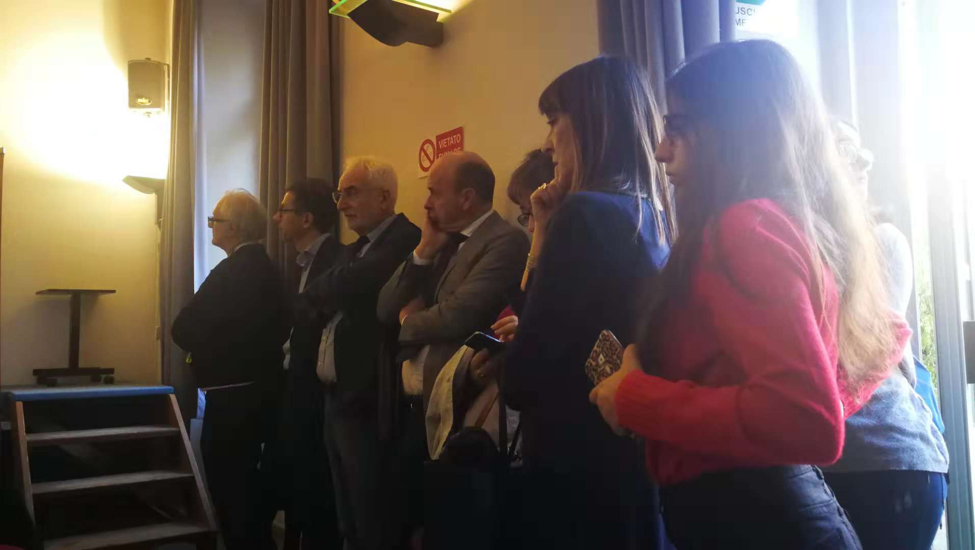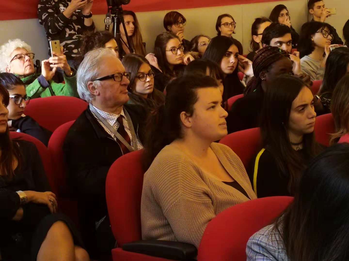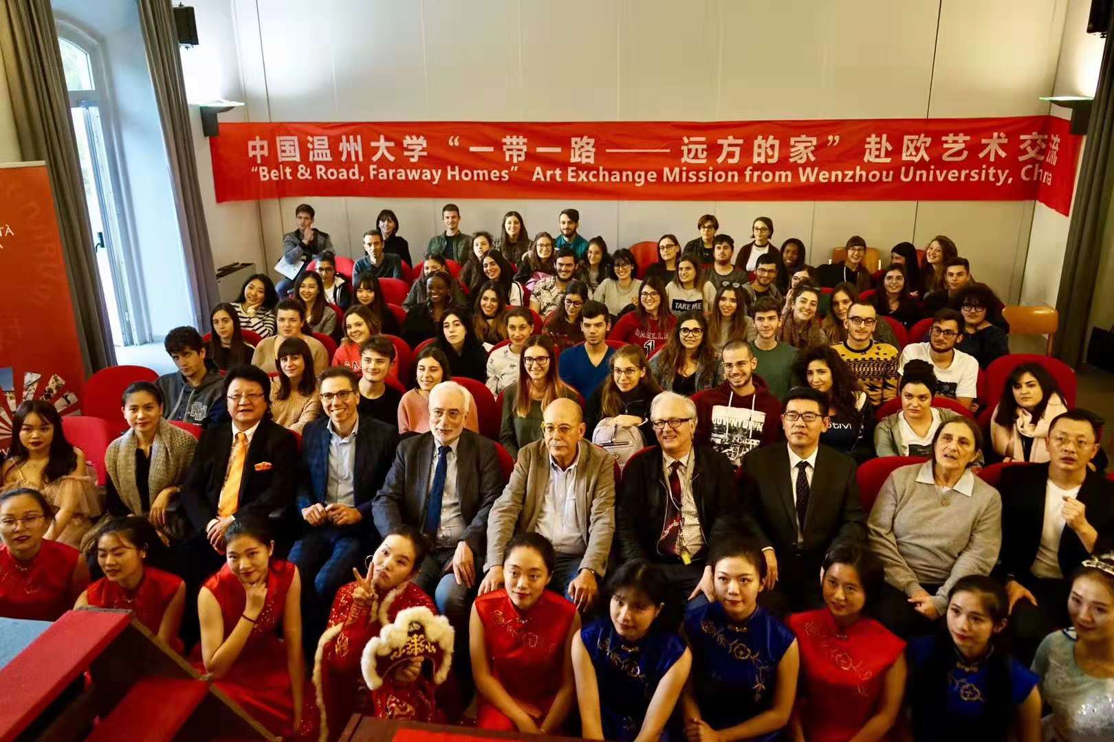 意大利分校所在地锡耶纳大学阿雷佐校区,得到锡耶纳大学校长及师生的热情欢迎。代表团与锡耶纳大学的师生进行了互动交流,并举办了一场精彩的演出,热情的意大利师生们早早来到音乐厅,座无虚席,每个节目都赢得阵阵掌声。代表团到访时恰逢锡耶纳大学新校长上任(到访10分钟前才宣布),这场活动也成为了他以校长身份参加的第一场活动。新任校长是音乐史专业,热情欢迎我们的到访,全场观看演出并给与很高评价。此外毒舌电影