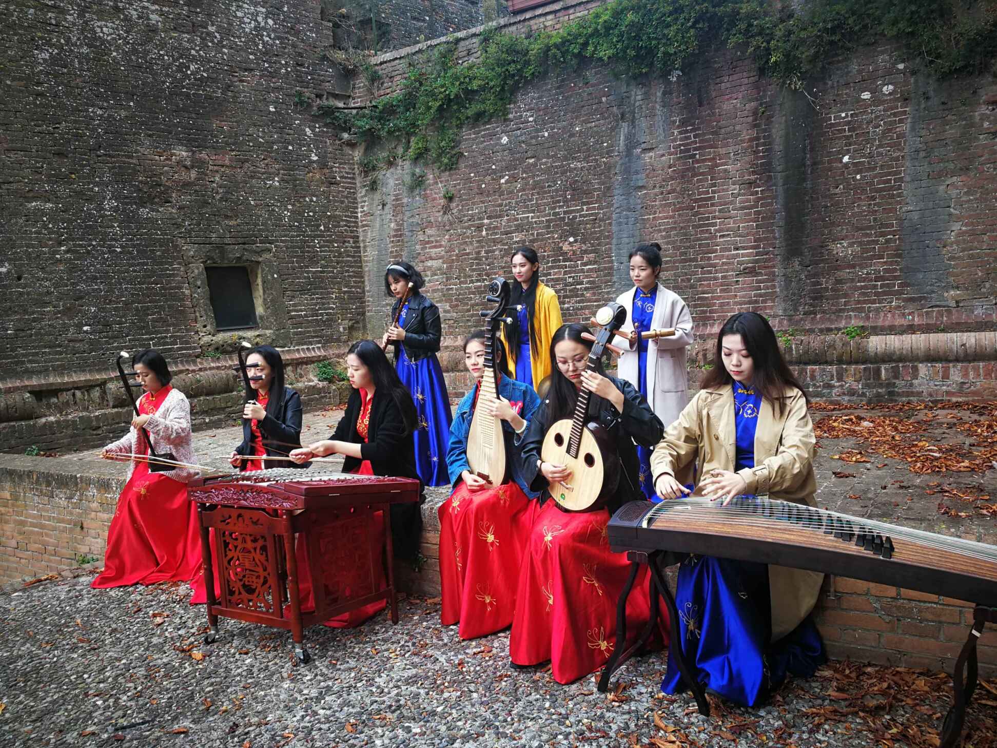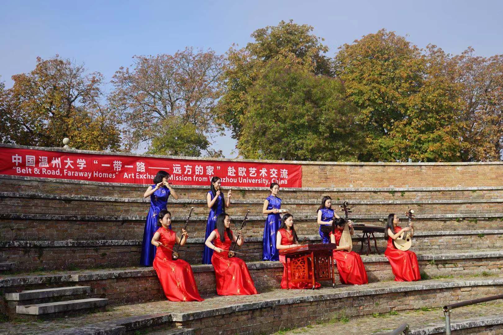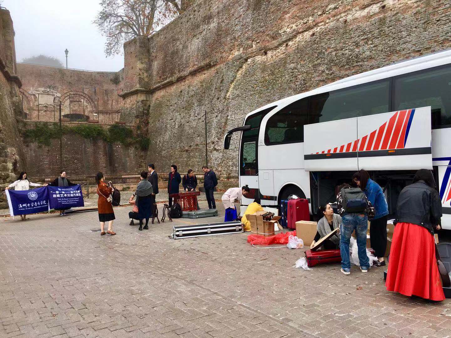 师生进行了互动交流。并在锡耶纳古城墙为意大利市民和游客进行了快闪表演,引得阵阵掌声。