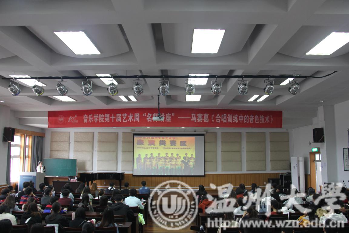 开展了第十届艺术周“名师讲座”--马赛葛《合唱训练中的音色技术》。