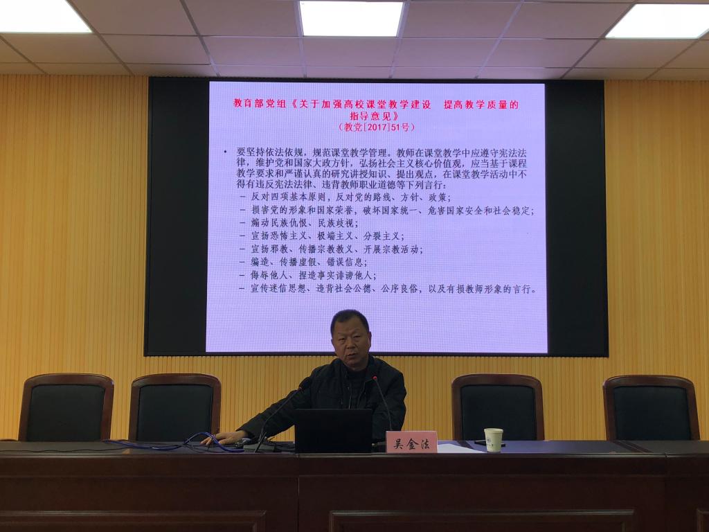 2018年12月19日下午,音乐、法政学院特邀校党委委员、纪委书记吴金法老师作《严以律己,廉洁从教》的专题讲座。本次讲座由法政学院书记林钦老师主持,毒舌电影