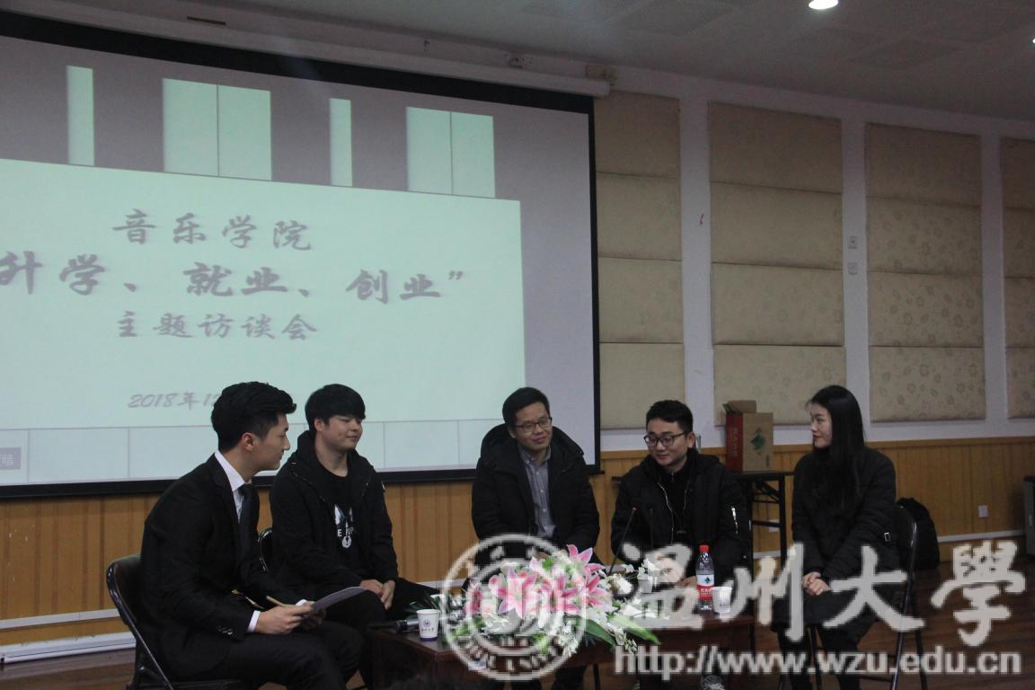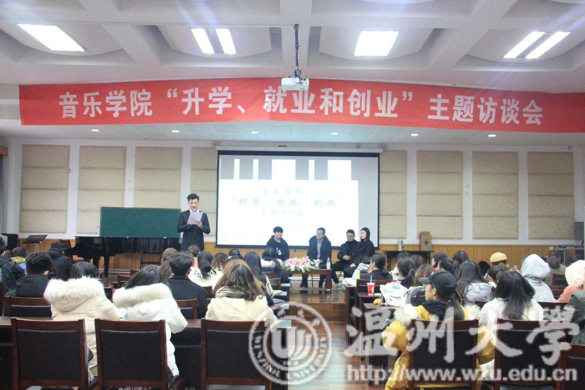 “升学、就业、创业”主题访谈会在音乐楼201学术报告厅举行。