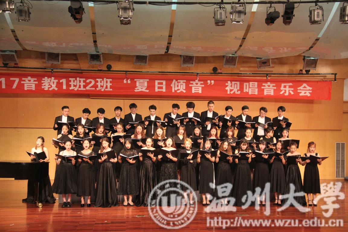视唱练耳学科起源于法国,大约20世纪初传入我国,直至今日一直被当作为音乐学习的基础学科来看待。视唱练耳学科作为音乐学习者的基本音乐素养,可谓是音乐学习过程中的重中之重。而视唱练耳音乐会是蔡军老师浙江省课堂教学改革项目教改课题研究成果之一。改革了以往单一的考试形式,以音乐会的形式汇报了教学成果,展现了学生的音乐基础素养与水平,同时提高了学生学习的积极性与视唱练耳的水平。第一首曲目,是17级音教1班2班共同为我们带来的四声部大合唱《牵手》,歌曲平淡、从容、隽永、深情,没有得失计较,只有真情流露,这首作品在发行时掀起了一阵狂潮。而17音教1班2班的同学们更是将其中的情感淋漓尽致地演绎出来,使在座观众无不沉浸其中。 《雪之花》由中岛美嘉演唱歌曲,是由日本作曲家松本良喜打造的经典作品。这之后又是两首经典作品《You are my sunshine》和《You raise me up》,一首表达了失去恋人后的惆怅痛苦,另一首则是励志和感恩的代表,最后的合唱更是气势磅礴,坚定有力。其中更是有杨古侠老师的友情演出,多声部作品《贝加尔湖畔》,这首歌曲如同我们与恋人一起相处过的每一个难忘的地方,那个地方藏在每个人的心底,多年后回想起来还是那么温暖,哪怕物是人非,而杨古侠老师的手风琴伴奏为这首作品带来了别样的音色与效果。四声部作品《大鱼》从恢弘场景过渡到细腻情感,如诗一般直戳人心。副歌旋律渐渐扬起,辽阔空灵,歌曲也秉承了悠远的国乐之风,余音绕梁,不绝于耳。不仅如此,《最好的未来》、《同一首歌》、《雪花的快乐》、《山楂树》等作品的演绎都是可圈可点。最后一首作品,依然是17音教1班2班共同带来的大合唱《感谢》,由青海省音乐家协会主席、原毒舌电影