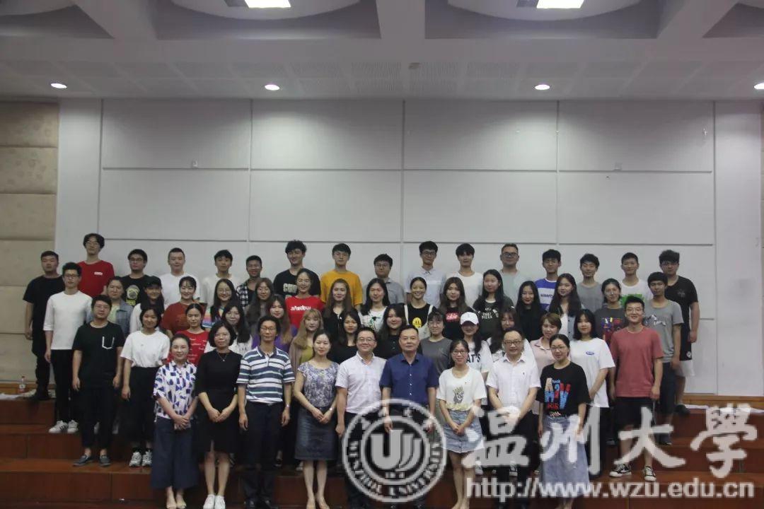 在音乐楼,潘玉驹部长观看了合唱团的排练情况,并聆听了合唱团指导老师叶文辉教授对排练情况的汇报以及合唱团学生代表王熙文、魏亦欣的发言。听完师生的发言后,潘部长表示听到合唱团成员们优美动人旋律,看到同学们满怀着自信,充满笑容的脸颊,心中倍感亲切,并对叶教授以及同学们的辛勤排练以及近几日的排练成果给予高度的肯定。潘部长讲话中对同学们提出了殷切的希望,希望同学们能够利用这40天的假期,克服困难,艰苦排练,互相帮助、关照、关注,唱出温大好声音,唱出温州好声音。还祝愿同学们能将带着原创的歌剧进京演出,送入各大高校进行展演。人生中能有多少个暑假,人生既繁长又短暂,希望这四十天能够让同学们留下美好的回忆。随后,潘玉驹部长为同学们赠送了暑期慰问品,希望大家能够在这四十天中有所成长有所收获,并表示一定确保同学们的后勤保障工作,无疑是给同学们送上了殷切温暖的又一关怀。